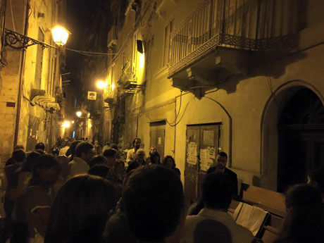 A partire dalle ore 21.00, invece, all’interno del chiostro dell’Università Aldo Moro, e’ stato ritagliato nella parte centrale del “salotto della letteratura”, uno spazio di primaria importanza in relazione al Museo Marta che racchiude in sé l’essenza della storia della Città di Taranto.