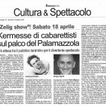 Il Palamazzola, Sabato 18 Aprile, era gremito di gente che si è divertita con le gag e le battute dei più gettonati comici dello Zelig Show.